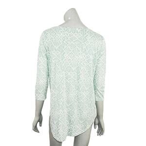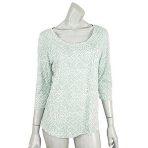 Peruvian Connection Women's Scoop Neck Blouse 3/4 Sleeve Green Geo Print Sz S