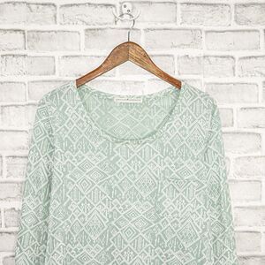 Peruvian Connection Scoop Neck Blouse Green Geo Print size S