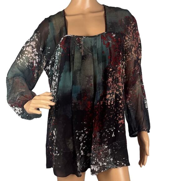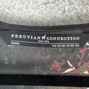 Peruvian Connection Silk Abstract Floral Tunic Blouse SZ 10 Boho Indie Designer