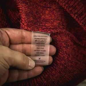 Peruvian Connection Size Medium M Red Ribbed Knit V Neck Long Sleeve 100% Pima Cotton Knit Pullover Sweater