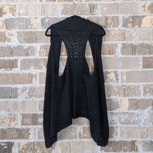 Peruvian Connection Speckled Black Alpaca Sleeveless Shawl Vest Knit Sweater