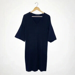Peruvian Connection Sweater Black Wool Silk Elbow Sleeve Dress Size Large