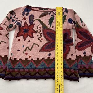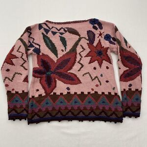 Peruvian Connection Sweater Womens Small Pink Multicolor Pima Cotton Floral Knit