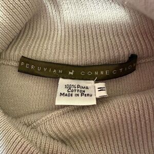 This Peruvian connection sweater is a must-have for any fashion-forward woman. Made with 100% Pima cotton, this tight-knit pullover features a turtleneck neckline and long sleeves. The beige color is perfect for any occasion, whether it be travel, casual or business.