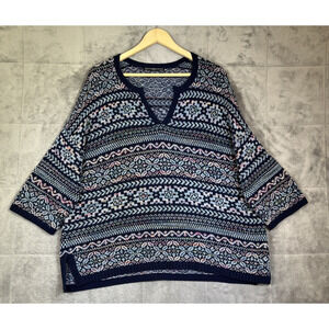 Peruvian Connection Sweater XXL Saphir Pullover Nordic Fair Isle Cotton Alpaca