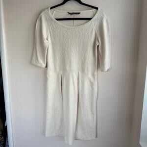 Peruvian Connection Textured Brocade Dress White Floral Pleated Half Sleeve Sz S