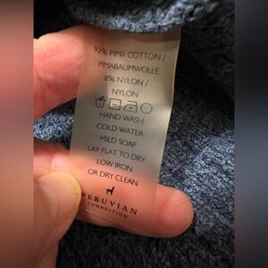 Textured, ribbed knit with boxy fit and drop shoulder wide sleeves. 92% Pima cotton and 8% nylon fabric. Made in Peru. Measurements are in the pictures. Good preowned condition, no major flaws noted, but it does have some washwear.