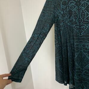 Peruvian Connection Tunic Swing Tee XS Small Burnout Sheer Long Sleeve Oversized