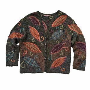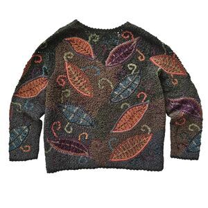 Peruvian Connection Vintage Alpaca Embroidered Autumn Leaf Handknit Sweater