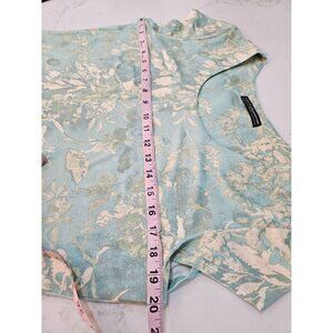 Midi Fit And Flare Knit Dress Size S Boho Romantic Floral Artsy. The White Lotus Dress exudes elegance with its aquamarine tone and Asian botanical print. Crafted from soft viscose and elastane, it ensures a comfortable fit. The flowing design and cap sleeves make it suitable for various occasions, blending style with practicality. Skirt falls from a curved raised waist to flow below.