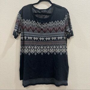 Peruvian Connection Women Fair Isle Sweater Top Gray Pima Cotton Aztec Sz M EUC