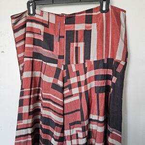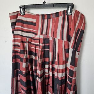 Peruvian Connection Women's 14 Red Grey Black Pattern Pleated Maxi Skirt