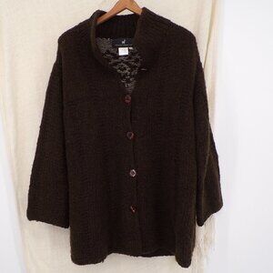 Peruvian Connection Women's Chunky Knit Cardigan Wool Sweater - brown, size M