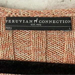 Women's Peruvian Connection Cardigan Sweater Size Large. Light Orange Button Front that can be worn open or buttoned up. Made of 100% Pima Cotton. Gently Used, Please see pictures for details.