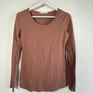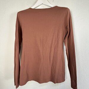 Peruvian Connection Womens Pima Cotton Long Sleeve Layering Tee Top Medium Brown