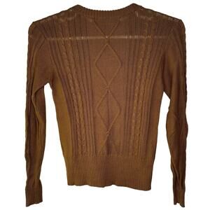 Peruvian Connection Women's Small Sweater Brown Cable Knit Crewneck Pima Cotton