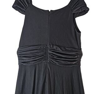 Peruvian Connection Sz M Black Modal Cotton V Neck Pleated Witchy Whimsigoth Fairy Grunge Midi Dress