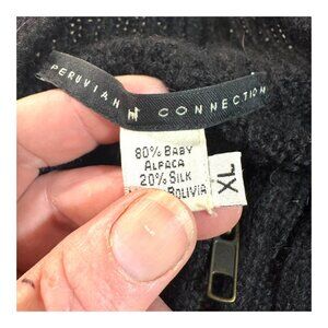 Peruvian Connection XL Baby Alpaca & Silk Black Ribbed Knit Cardigan Sweater Zip