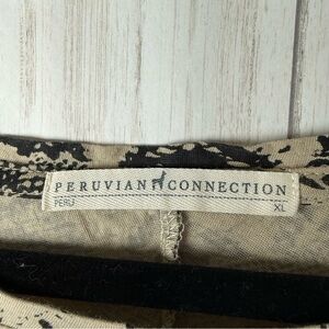 Peruvian Connection XL taupe Floral Lace Pattern Top.