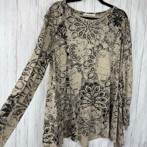 Peruvian Connection XL taupe Floral Lace Pattern Top