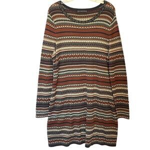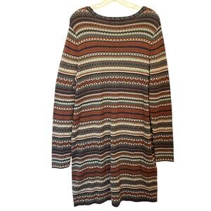 Peruvian Connection Zenima Sweater Dress Womens XL Fair Isle Espresso Multicolor