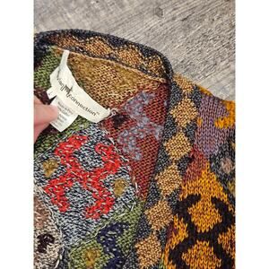 Peruvian Connection alpaca wool deep v button cardigan sweater large geo artsy