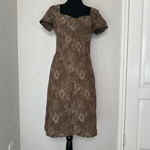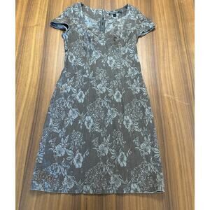 Peruvian Connection brown floral denim 90s style babydoll dress, artisan, size 8