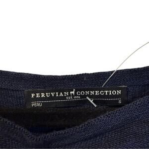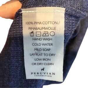 Peruvian Connection navy blue dress size Small 100% Pima cotton knit dress, has a boat neck, has some stretch to the fabric, it’s put on over the head. Classic piece that will last a longtime. Never worn, the paper part of the tag fell off.