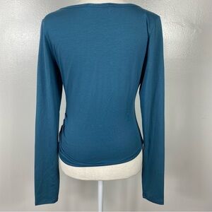 Peruvian connection teal side ruched long sleeve top Pima cotton