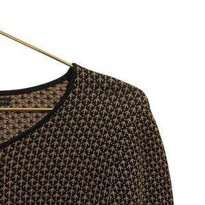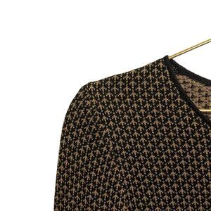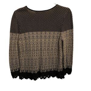 Peruvian Connection Pima Cotton Lace Trimmed Cardigan Black Tan Sweater MED