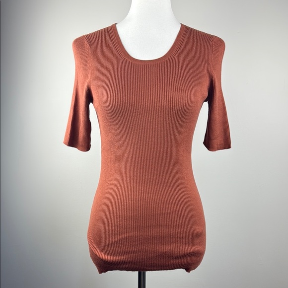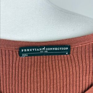 Elevate your wardrobe with this stylish rust ribbed top from Peruvian Connection. Perfect for any occasion, this top offers both comfort and elegance. Excellent condition, hardly worn.