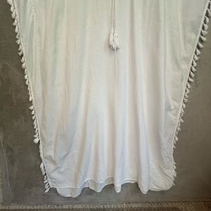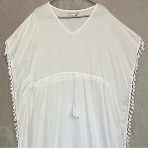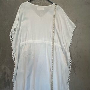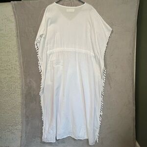 Peruvian Cotton Resortwear White Maxi Kaftan Cover Up Fringe Sz M Made in Peru