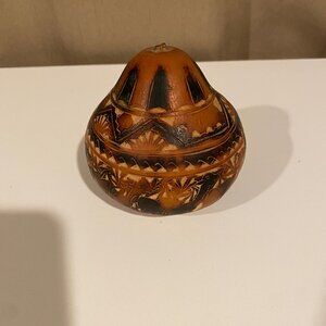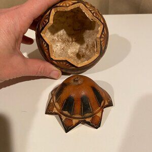 Peruvian Hand-Carved Gourd Container 4x4.5” Folk Art Decorative Box