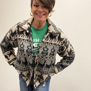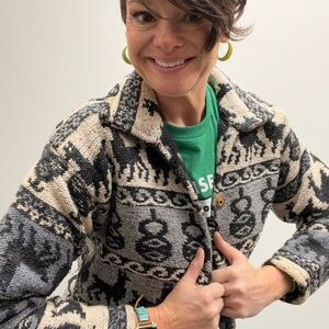 Peruvian Huancayo Alpaca Wool Knitted Cardigan Button Down Jacket Size Small