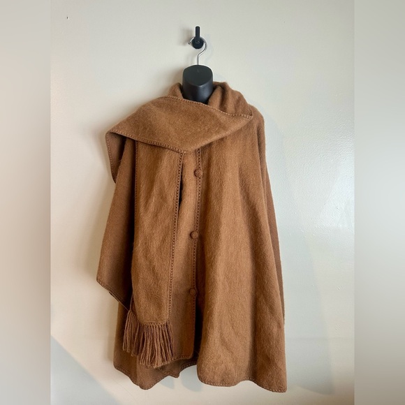 Stunning Peruvian Link 100% Alpaca cape / ruana in a rich camel brown.