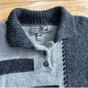 Peruvian Link 100% Alpaca Collection Size Large Black Grey Collared Sweater Top