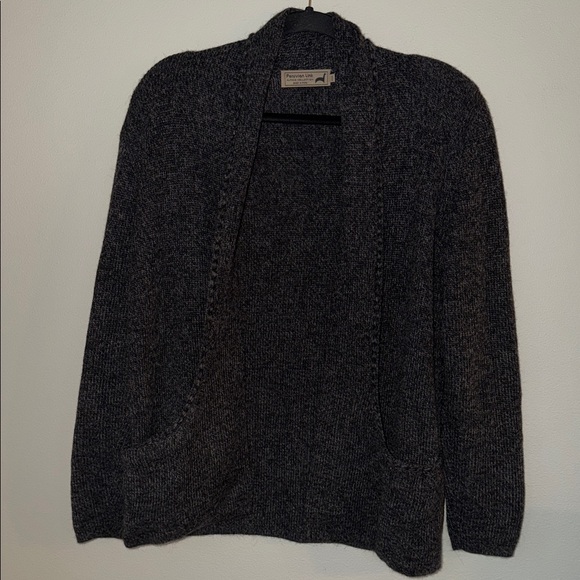 Peruvian Link Alpaca Collection dark grey comfy open front cardigan sweater with pockets, has shoulder pads that could be cut out if you didn’t want them in