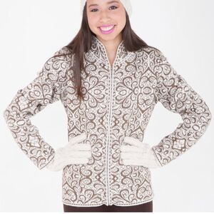 The ladies monterey cardigan is a shapely, decorative piece. The zipper closure is designed to accommodate casual activities, while maintaining high style!