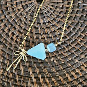 This beautiful 14K gold-filled necklace features a unique opal polished to perfection, an 8mm square AB crystal, and a 14 K gold-filled bow and accent beads. Its asymmetric lines add interest and let you decide how it should hang. Worn alone or as a stacker; it's sure to draw compliments. The chain is 16-inches with a 2-inch extension. It was handmade in my studio in Bend, Oregon, and like all my pieces, it was made with attention to the details.