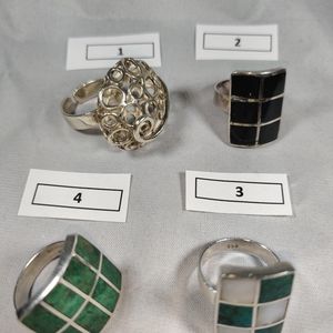Peruvian Silver rings with fantasy stones. These are used, in good condition.