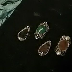 Peruvian Silver Stone rings with Dyed agate stones. Has adjustable ring bands. Bought with my mother years ago for resell at renaissance fairies. She would sell them for $15 each but we are now selling the lot for $20.