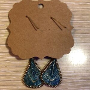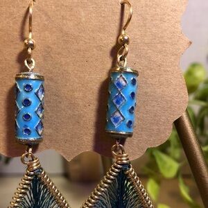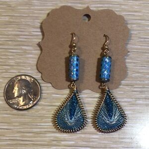 Peruvian Thread Art Earrings Blue and Golden. Beautifully made with love and unique!