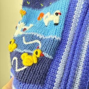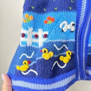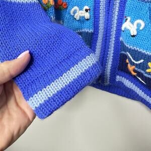 Peruvian Wool Children's Hand-Knit Full Zip Hooded Sweater Pockets Animal Scene