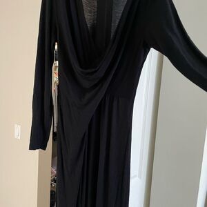 Peruvian connection Black Long Sleeve Maxi Dress Deep V-Neck Draped Front - L