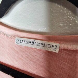 Peruvian connection XS Peach Orange Space Dye Short Sleeve V Neck TShirt Cotton