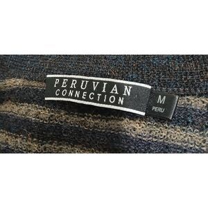 Peruvian connection mens medium 100% baby alpaca brown gray stripe sweater