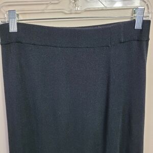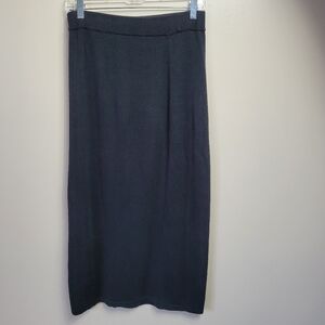 peruvian connection long skirt very light weight I don't know the material the tag is missing but it's very light soft material runs large. small stain in front visible in the light. waist 14 but stretchy lenght 35