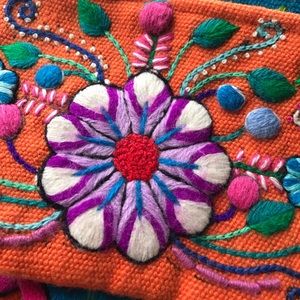 Very colorful Peruvian pouch. Gorgeous hand embroidered flowers. Great for makeup, beach accessories- I use mine as a wallet!