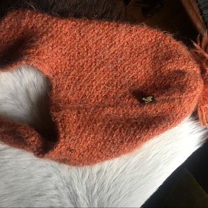 This hat is so soft and cozy and not itchy at all because it is acrylic with an amazing alpaca look. The color is a little closer to the close up pictures, a lighter orange. It is a tiny bit too small for me but I have a large head for a small woman. It fits but I prefer hats to be baggy.