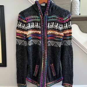 Peruvian Print Gray Acrylic Hoodie Sweater sz M EUC